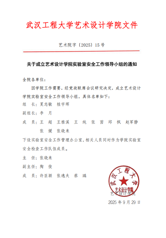 关于成立3044am永利集团实验室安全工作领导小组的通知