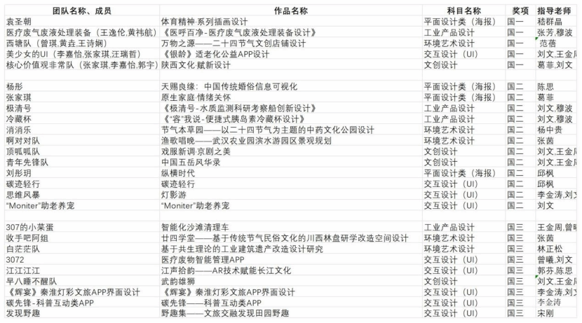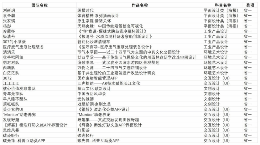 其中,袁圣朝(指导老师:嵇群晶),王逸伦、黄祎航(指导老师:张芳、穆波),曾琪、黄垚、王诗娴(指导老师:范蓓),李嘉怡、张家琪、汪瑞哲(指导老师:刘文、王金周),张家琪、李嘉怡、郭宇(指导老师:葛菲、刘文)等五组优秀团队脱颖而出,荣获全国一等奖。此外,杨彤等12组参赛团队获得了全国二等奖;荣获全国二等奖,杨睿雯等9组团队荣获全国三等奖。在蓝桥杯省赛评选中,艺院学子斩获了一等奖26项、二等奖31项、三等奖46项、优秀奖20项。