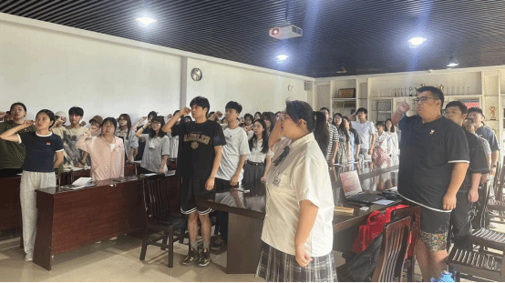 员工第二党支部张珂莹带领全体毕业生党员重温入党誓词,重忆入党初心,牢记职责使命。