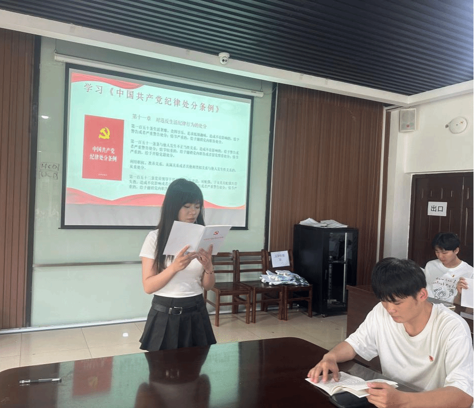 在理论学习环节,支部党员涂梓璇带领大家原原本本学习了新修订的《中国共产党纪律处分条例》“第十一章 对违反生活纪律行为的处分”部分。支部党员张飞雪以《知敬畏、存戒惧、守底线——做知行合一的老员工》为题,结合老员工党员的实际,分享了对《条例》的学习感悟,呼吁青年党员要始终将党纪要求铭记于心,自发地予以遵守,坚定地保持对党忠诚。在工作和生活中,把党纪当作准则,严格地约束自我,进而为党的伟大事业奉献自身力量。