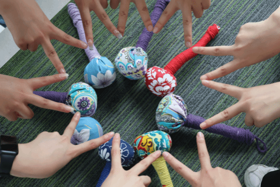俗话说:“冬练三九,夏练三伏”,炎炎夏日最适合养生锻炼。艾草经络锤可以帮助人们缓解工作的疲劳,轻轻地锤一锤,不仅有利于活络经脉,更能提神醒脑。在课堂上,同学们学习了关于艾草的相关疗效的作用,也学会了经络理疗的养身知识。同学们跟着老师将艾草包进行包扎和固定,一个个五颜六色的经络锤便制作好了。