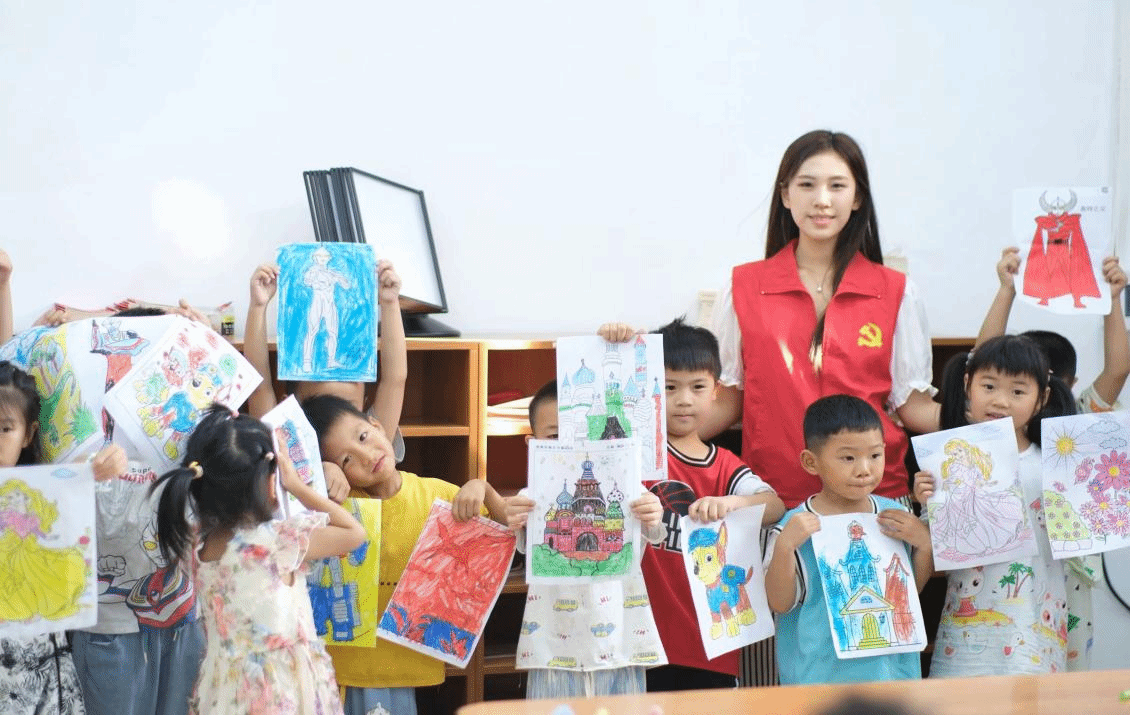 本次活动历时22天,39位成员分4支小队开展,总计接受248名留守儿童。支教以助推乡村美育教育为宗旨,以美术绘画为主要授课内容。志愿者们发挥专业优势,充分了解学情,精心准备了一系列丰富多彩的教学方案,包括红色团课、八一生日会、红歌传唱、关爱留守老人、宣传视频、篝火晚会、运动会、亲子活动、手工作品展等课程,通过一系列生动有趣的教学活动,孩子们不仅学到了绘画课程的基本知识,还体验到了艺术创作的乐趣,激发了孩子们的创造力和艺术才能。7月24日成果汇报展前夕,王超、黄晶晶到达现场看望同学们,并指定同学们完成汇报展,现均已完成。