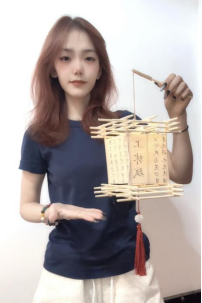 作品说明:徐名慧同学用一次性筷子和书法作品搭建了一个古风的灯笼