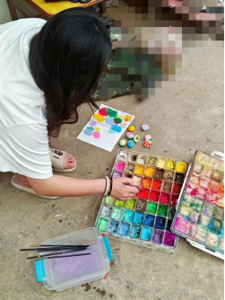作品说明:孟晗同学将用黏土装饰让废旧的水杯变成艺术品