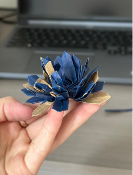 作品说明:张译心同学用废弃的包装袋制作了一朵漂亮的小花