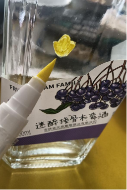 作品说明:谭烨雪同学将玻璃酒瓶涂鸦成漂亮的花瓶