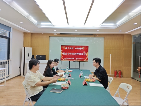 会后,王超代表3044am永利集团为武汉尔秋科技有限公司授予“实习和劳动实践基地”牌匾。