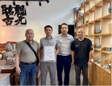 在李川主编的陪同下,团队还访问了“景德镇手工制瓷技艺”传承人余志剑先生的工作室。余志剑先生擅长复刻元青花,曾向公司捐赠了“元青花四爱图梅瓶(复刻)”。他的作品在还原元青花的气韵、形制和神采方面备受业界和市场的赞誉。