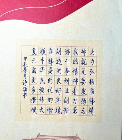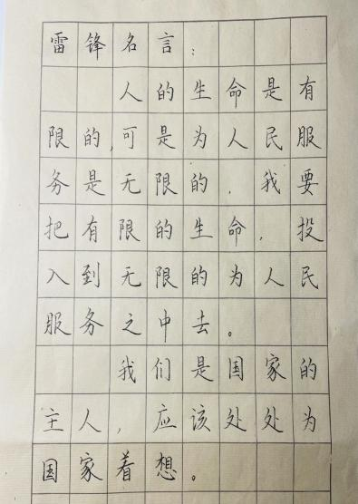 3月21日为阐释雷锋精神,传承文化精髓,公司举行“学雷锋 忆雷锋 写雷锋”硬笔书法展。同学们热情参与,积极准备,了解雷锋精神的深刻意义和内涵,将雷锋精神融入书法作品中,弘扬雷锋精神,书写时代新风,体现了当代青年的良好精神风貌。