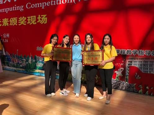 三等奖团队师生合影(从左至右:朱兆姚、胡梦灵、葛菲、吴怡妍、袁秀芳)