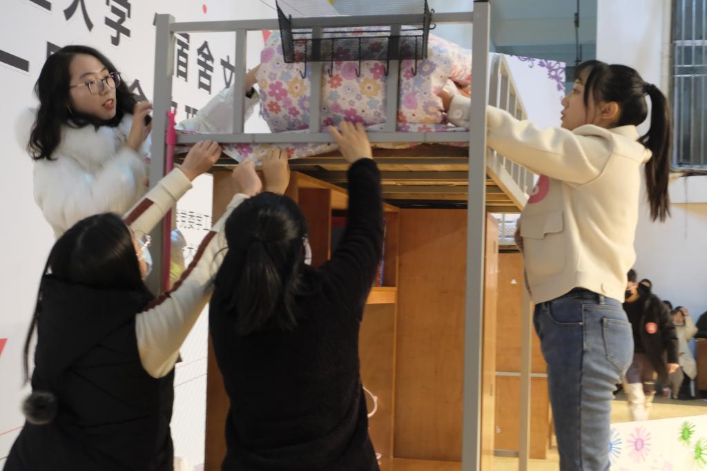 2020年12月11日,3044am永利集团官网“宿舍文化建设月”第一届宿舍整理PK大赛在大礼堂举办,本次活动由学工处主办,3044am永利集团承办,后勤保障处协办。本次活动是3044am永利集团官网“宿舍文化建设月”系列活动中的创新活动,以搭建模拟寝室,员工现场整理、布置寝室的模式来开展比拼。