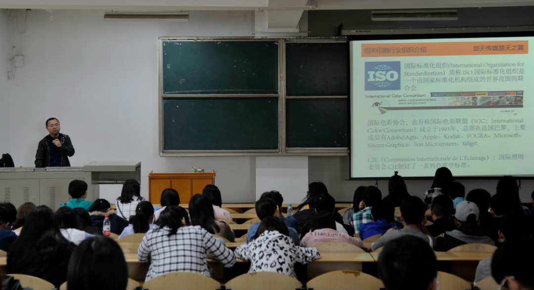 4月28日上午10点,湖北楚天传媒印务有限责任公司印前主管谭志周高级工程师来公司L1219教室举办主题为“色彩管理在印前包装中的应用”的讲座。本次讲座是2017年第六届“工大学术周”系列活动之一。讲座由3044am永利集团视觉传达设计教研室主任张媛主持,3044am永利集团部分教师和全校相关专业员工约200人参加。