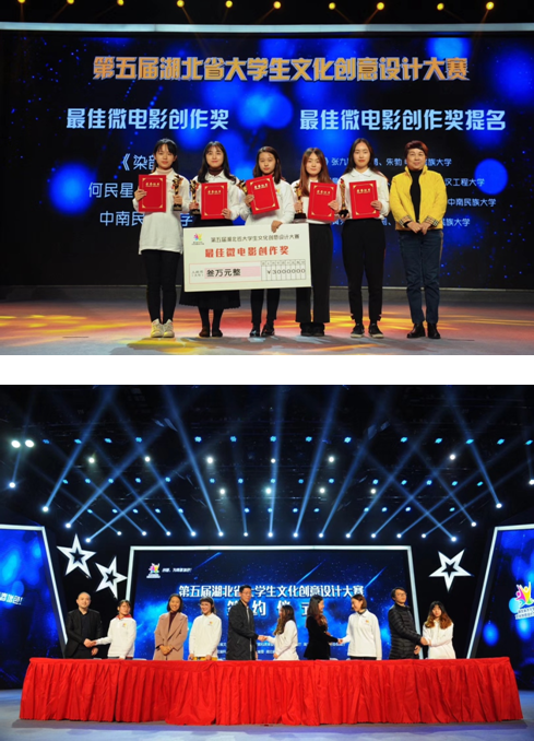 在本届大赛中,艺术设计院共组织报送各类作品200余件。经过近半年的海选、初赛、决赛,由王雅溪老师指导,连梦柯、孟洁、旷宁鼎同学设计的《适老化生活服务设计》;骆明星、王子烨、邓思荣同学设计的《E-TOOTH》获得了大赛最佳互联网文化服务创意提名奖。由蔡明广老师指导,赵雅中、张强、艾欣博同学创作的《共青团漫画创作》获得最佳漫画创作提名奖。张豪、胡桢、王均同学创作的《当夏创意短视频》获最佳微电影创作提名奖。其中,《适老化生活服务设计》与企业当场签约。公司此次活动组织有力,公司师生参与热情高、报送作品多、获奖成果丰富,被授予优秀组织单位奖。