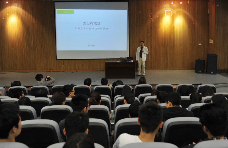 上午九点半,陈刚昭先生的专题讲座在3044am永利集团工业设计教研室副主任曾曦老师的主持下正式拉开序幕,本次讲座的主题是“志当存高远——如何成为一名成功的设计师”,这个题目不仅仅是在谈设计,更是在激励各位学子的上进心,进取心,因此对在场所有的同学都具有很强的吸引力。陈刚昭先生以自己职业生涯的很多实战设计成就为例,向所有同学讲述了如何从一名普通的工业设计专业员工走向社会,成为一名真正的工业设计师,甚至是工业设计大师的“诀窍”,那就是求知若愚,志当存高远。作为一位在工业设计行业工作了近二十年的设计师,陈刚昭先生的设计经历非同一般。1997年他进入美的工业设计中心, 1999年担任设计总监,2001年担任设计部部长,全面负责设计策划、产品设计及结构部工作。1999年他获得美的第一届优秀设计师奖。2000年,他获美的集团专利个人二等奖。2001年陈刚昭先生负责日本东芝吸尘器针对中国市场的产品规划与设计,得到日本东芝株式会社社长西室泰三及美的总裁何享健的高度评价,上报当年的美的集团优秀创新奖。2002年,他与宋颢先生一起成立青鸟工业设计有限公司,发展至今已拥有近30人的优秀设计团队,与国内的众多的知名品牌组成战略合作伙伴,以全年合作的模式,为企业提供包括企业品牌策划、产品形象策划、流行趋势分析,产品造型设计、工程设计等全方位的服务。陈刚昭先生还以2010级工业设计实习生孙琴同学的一个设计案例为背景,启发和鼓励大家,从小事做设计,重视积累,重视思考,抓住现在的好时机,努力学习,争取更加辉煌的未来,讲座现场,掌声不断。