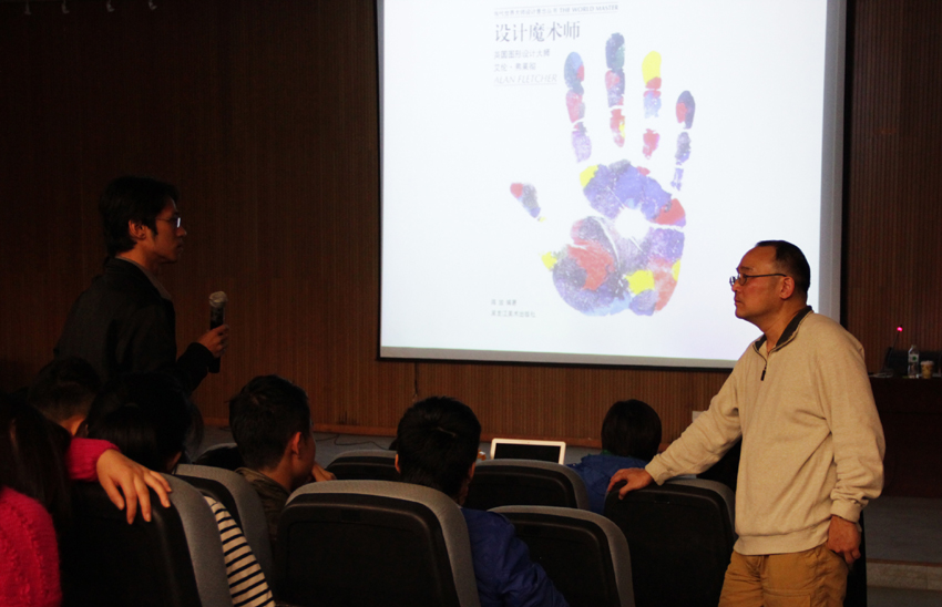 陈放教授以英国图形设计大师艾伦·弗莱彻(Alan Fletcher)作品中的创意来源和设计方法诠释了风格的概念和个人对风格的理解,他认为,设计师的风格不是有“范式”和“样式”,设计师的风格应该是其作品能很好地为服务对象服务;他认为,能够准确、生动传递商品或服务对象有用信息的作品就是一个有风格的作品。陈放教授的观点为在场师生打开了眼界,开拓了设计思维。讲座后,同学们与陈放教授进行了热烈的互动,大家都受益匪浅。