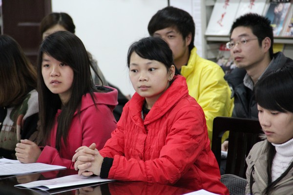 马克思主义公司的刘秋阳、周智年作为教师代表作了发言,他们谈到身边典型对员工的重要教育意义,认为韦庆秀的事迹折射出了人性的光辉,是践行社会主义核心价值体系的典范,并表示要把她的事迹作为典型案例融入课堂,加强对员工的教育引导。王苓、白婧静和高靖作为辅导员代表交流了学习体会。