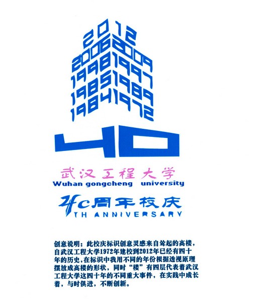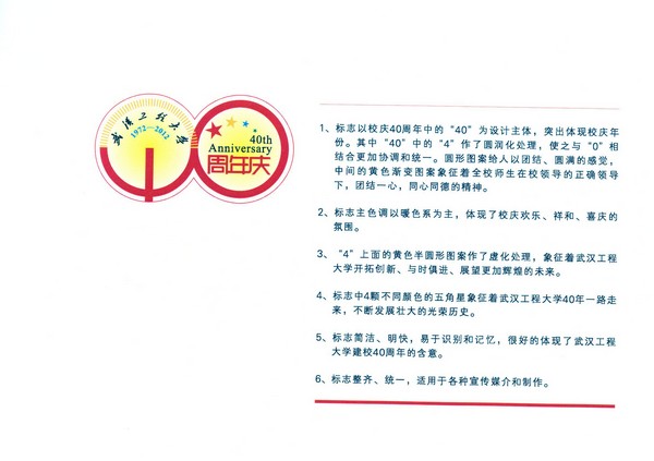 标志释义:数字40、公司标志、五彩飘带、欢聚一堂