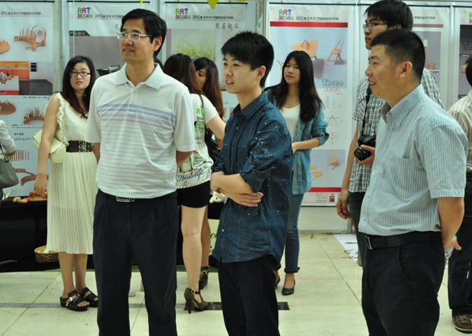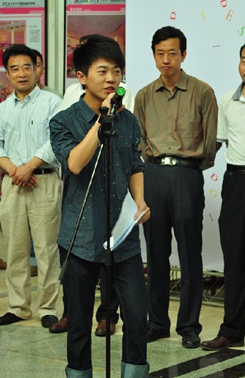 2012届工业设计专业李鑫同学作为参展的毕业生代表和毕业指导教师代表曾曦博士在开幕式先后发言。