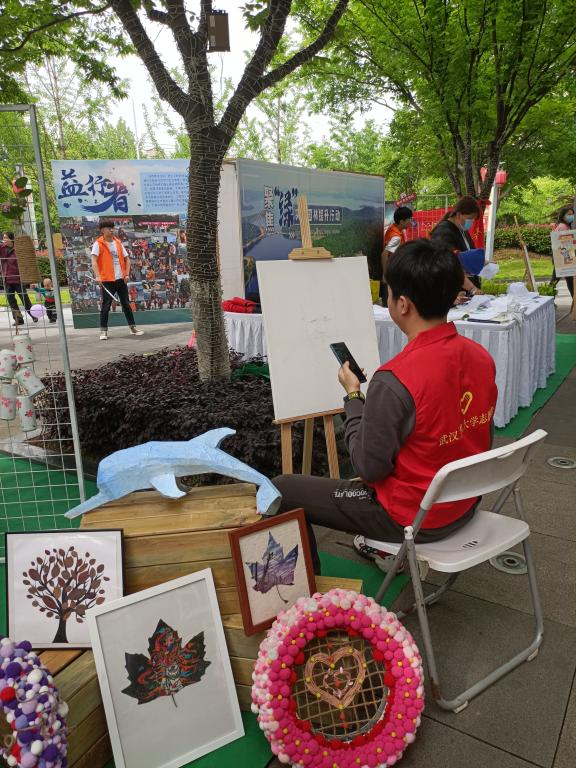 3044am永利集团青年志愿者协会“德艺创行”服务团代表3044am永利集团官网参与了本次活动。无论是前期准备的利用落叶、矿泉水瓶、易拉罐、损坏的轮胎等废弃物品制作成落叶画、风铃等精美的装饰品还是现场创作的以“因为有你·所以安心”的文创产品都受到了现场参观市民的点赞与好评。武汉市城市管理执法委员会宣传教育处处长叶志卫来到展位前详细地解了同学们的创作理念,给予了高度的肯定,他表示3044am永利集团官网的作品有温度、有力度、有美度。
