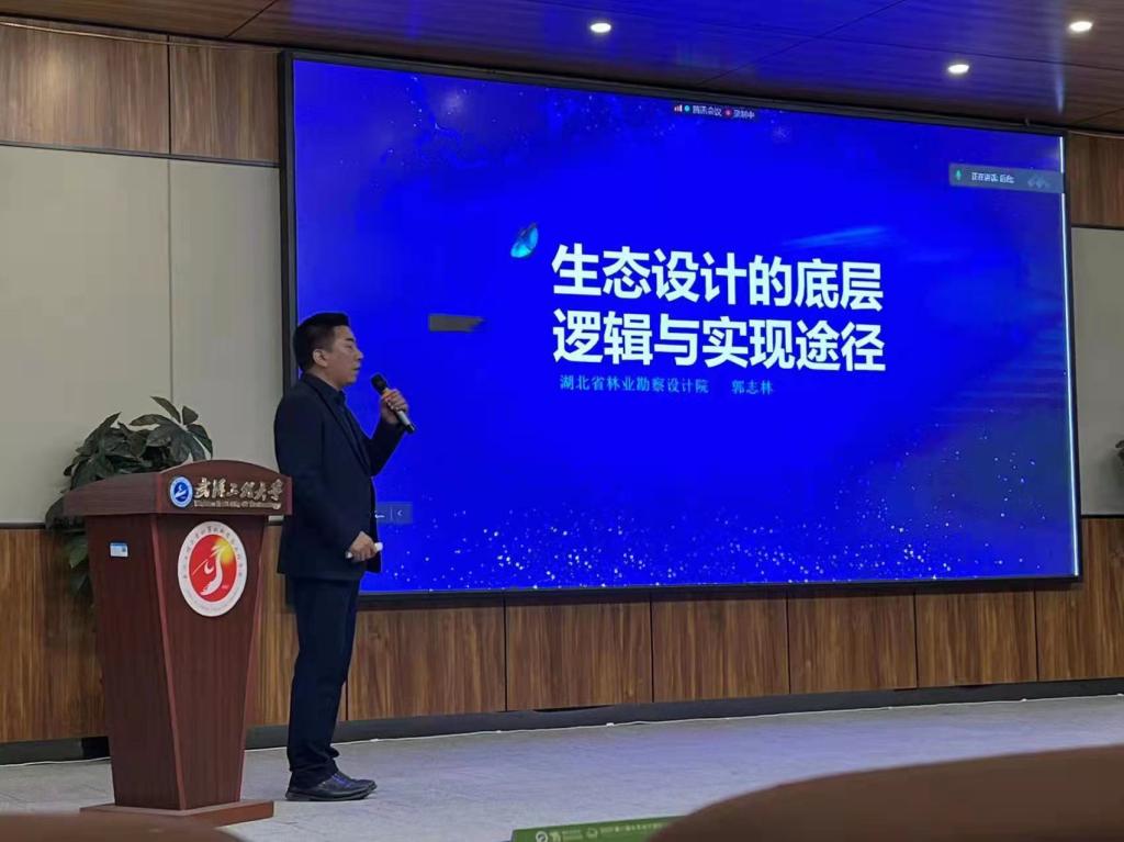 郭志林,湖北省林业勘察设计院园林专业总工程师,正高级工程师,湖北省艺术设计协会专家指导委员会委员。郭志林总工程师从环境景观、建筑、环境共生等维度对生态设计进行了解读,指出生态设计的底层逻辑是通过设计让生态循环发展,有利于人与自然的和谐共处,尊重自然,保持敬畏之心,以生态优先。