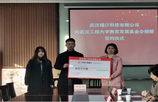 本网讯 (通讯员:郑民源,罗琼,审核员:夏志敏,邓新洲)12月23日上午,武汉靖汀科技有限公司向公司捐赠300万用于“数字影像协同创新设计中心系统”项目建设,签约仪式在3044am永利集团会议室举行。3044am永利集团官网正校级干部、公司基金会理事长叶芃,公司2013级动画专业毕业的杰出员工、企业总裁李雨宸先生,公司品牌策划总监董雪俏女士出席仪式,仪式由公司基金会秘书长邓新洲主持。