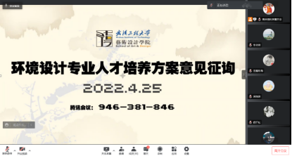 4月25号,环境设计系组织了本专业的员工干部及代表在腾讯会议线上召开了针对2019人才培养方案的意见咨询会,会议由环境设计系副主任高英强老师主持。