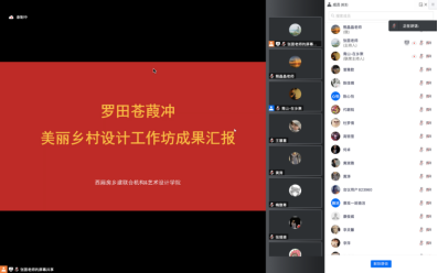 会议伊始,主持人环境设计系主任张茵老师对西厢房乡建联合机构给予的设计指导和支持表示感谢,同时也对本次设计工作坊员工的积极参与给予了肯定。随后10个汇报小组逐一进行了汇报,汇报过程中每个小组都准备充分,将精心设计成果展示给各位评委。在每组汇报后,各位评委十分认真的从乡村设计理念、功能、设计落地性、乡村本土材料的选用等方面进行了点评和相应的指导,整个汇报过程气氛热烈。