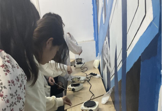 活动中,同学们热情高涨,他们在桶里挑选心仪的鲜花,将其放入盒子内,并加入干燥剂。干花的制作不仅是一种手工艺术,更是一种美的享受。随后,工作人员将蜡烛香薰的制作流程投影到大屏幕上,同学们仔细观看认真模仿,制作属于自己的蜡烛香薰。在发联成员的耐心指导下,同学们一步步完成了自己的作品。整个活动室充满着欢声笑语和创意的灵感,将专业知识与艺术创造有机结合。