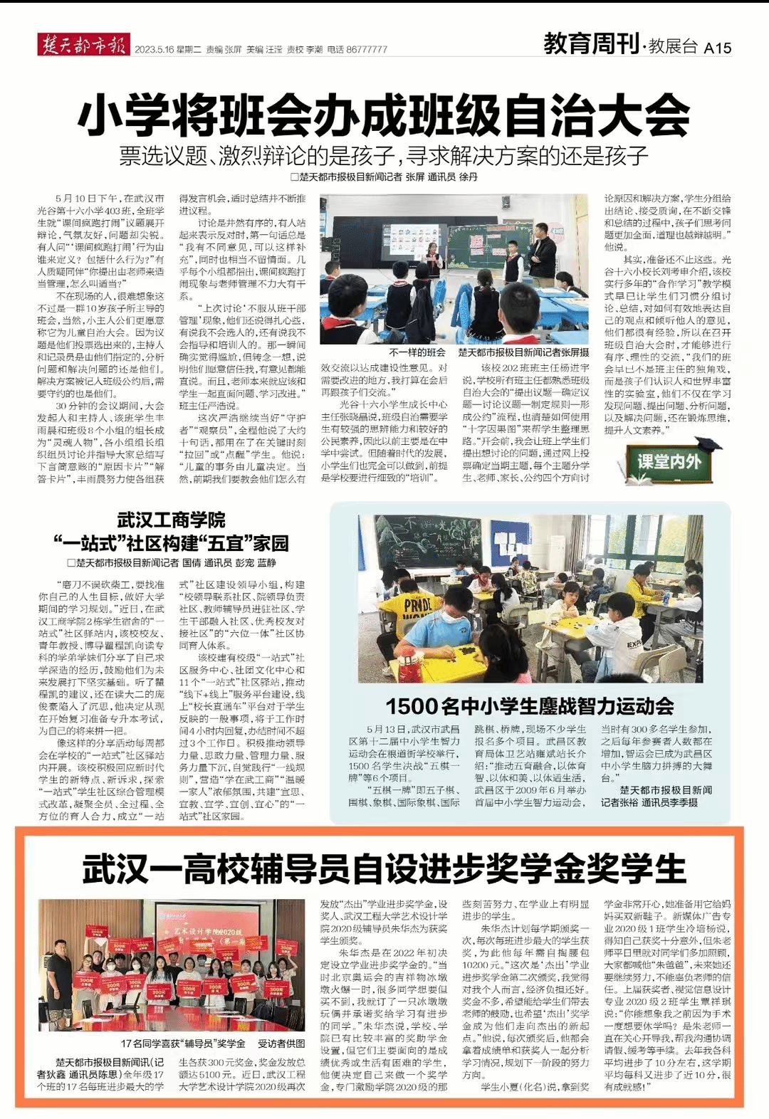 【楚天都市报】武汉一辅导员自掏腰包给员工发奖学金
