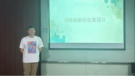 陈铖同学围绕什么是功能创新的包装展开说明,主要讲述了获奖案例赏析与包装设计未来流行趋势这两大板块。陈同学总结出未来包装设计的8大流行趋势:1、自然柔和的简约色彩。2、包装中应用平面插画。3、让用户直接感受到包装的质感,增加触觉体验。4、尝试引人注目的色调,复杂的细节,抽象或华丽的图案。5、包装设计中加入互动元素和创新的材质。6、加入创造性的故事,与用户进行情感链接。7、设计带透明窗口的包装。8、采用抽象的包装设计。