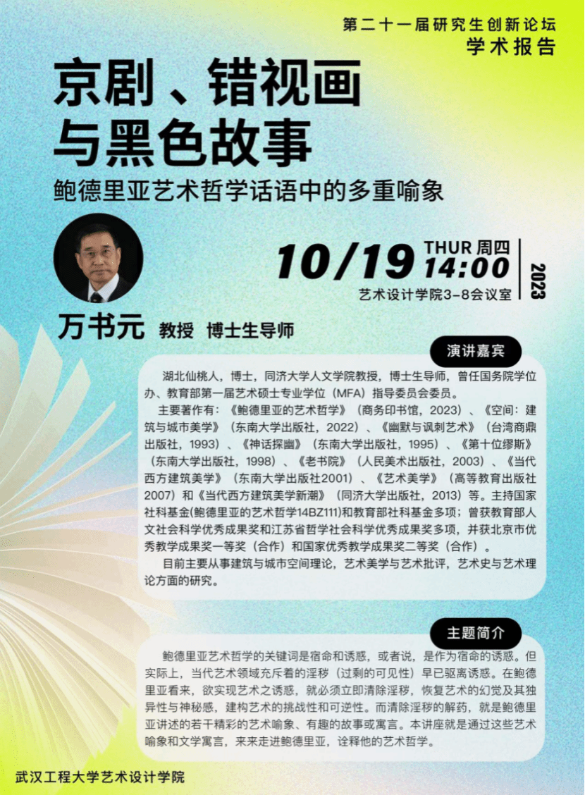 万书元教授目前主要从事建筑与城市空间理论,艺术美学与艺术批评,艺术史与艺术理论方面的研究。