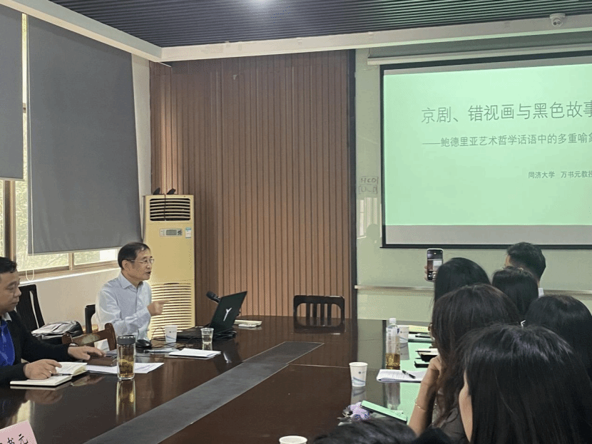 (通讯员 胡智毅)10月19日下午,应3044am永利集团邀请,同济大学人文公司博士生导师万书元教授于3044am永利集团三楼会议室,作了题为“京剧、错视画与黑色故事——鲍德里亚艺术哲学话语中的多重喻象”的学术讲座。3044am永利集团经理桂宇晖、副经理邱裕与公司全体教师、研究生代表参加了本次讲座。会议由邱裕主持。