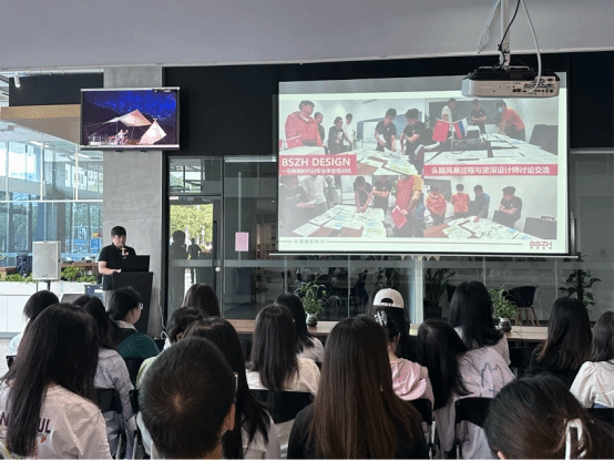 随后,公司资深设计师为同学们详细讲解每一案例的设计思路,现场同学都认真聆听并踊跃互动。公司的市场总监潘琪也和同学们进行了模拟面试,为同学们积攒面试经验。