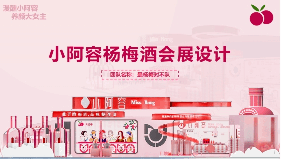 为了践行乡村振兴战略,宣传企业相关产品。在年轻女性对酒的偏好和会展市场规模日益广阔的语境下,团队以恩施州向家姊妹酒业有限责任公司为切口设计出《小阿容杨梅酒会展设计》作品。在创作过程中,团队提取杨梅、酒文化和土家文化作为设计元素,并相将其进行结合、运用,经过团队成员(钟玉洁、陈华、赵世展、胡锦仪、万业宏)的密切合作完成了作品的效果图、海报和PPT的制作。作品《小阿容杨梅酒会展设计》经过公司初赛,省级复赛,成为公司唯一一支进入全国总决赛的参赛作品。