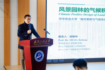 华中农业大学园艺林学公司风景园林系教授、IFLA气候变化工作组委员、IFLA APR气候变化工作组委员邵继中教授通过风景园林的气候积极性设计的报告揭示了全球面临气候变化危机的严重威胁,提出全球气候变化已成为当今国际设计共同面临的重大挑战。期望所有的风景园林设计师采取个人和集体行动,包括提高对环境变化速度的认识;帮助减少人类对温室气体的排放并增加碳汇;倡导前瞻性规划设计,以满足当前和未来的环境变化。最后他从风景园林“气候缓解方法”和“气候适应方法”方面阐明了风景园林的气候积极性设计内容。