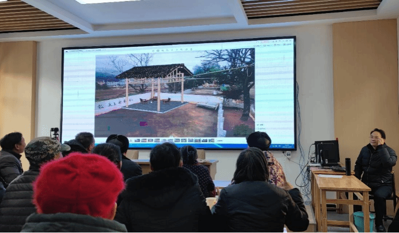 12月25日到达读书山村后,陈波讲解了本次工作坊所要改造的几处景观节点的方案,并聆听了村民们的想法和意见。
