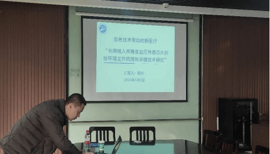 陈行围绕高精度血压传感芯片进行了课题分享。系统地解释了高精度血压传感芯片长期植入人体后的微环境互作机理,并分享了该课题关键技术的研究进展。陈行表示,目前长期植入的血压传感芯片相关研究成果主要集中在国外,国内该方面的研究仍有待完善,陈教授完整地讲解了本课题的研究思路和研究进展,介绍了学术论文的写作方法。