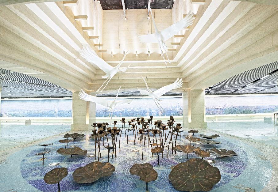 “黄鹤归来”艺术中庭实景现场-武汉轨道交通2号线汉口火车站地下装饰项目