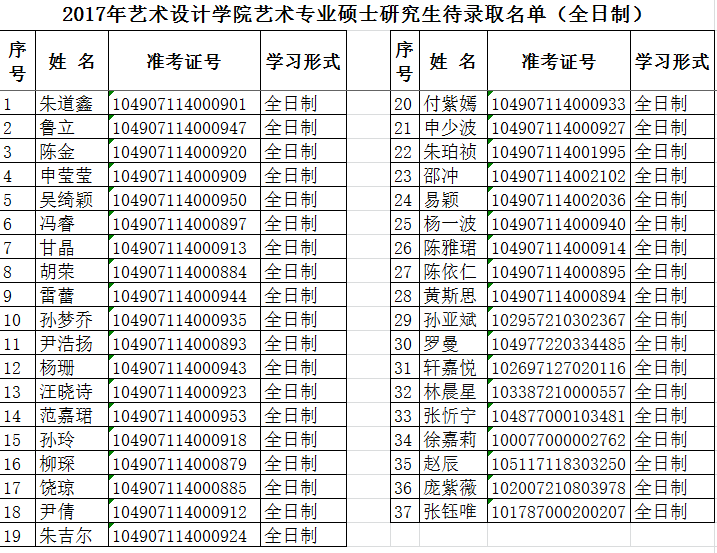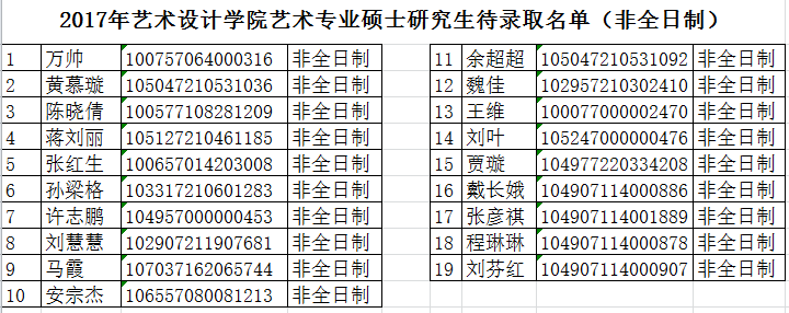2017年3044am永利集团艺术专业硕士研究生待录取名单